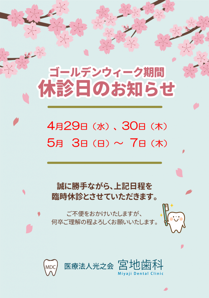 ●ゴールデンウィーク休診日のお知らせ